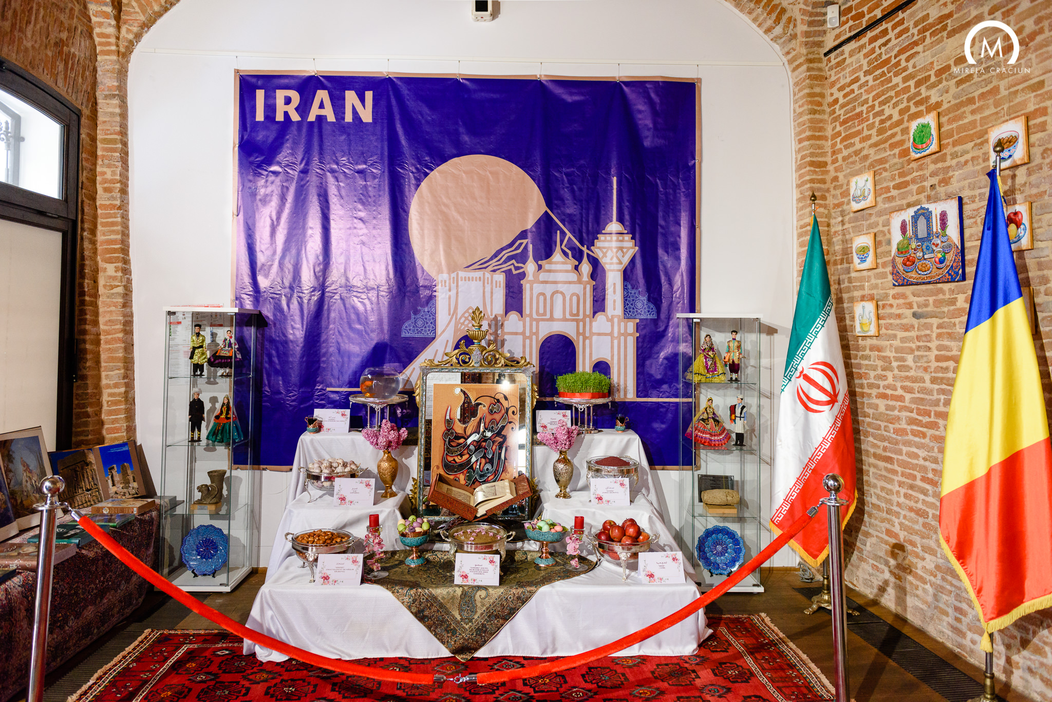 در این نمایشگاه حدود شصت عکس از آیین‌ و رسوم نوروز در ایران به همراه کتاب‌های نفیس از جاذبه‌های گردشگری به نمایش گذاشته شد. همچنین انواع فرش و صنایع دستی در معرض بازدید قرار گرفت. علاوه بر عموم مردم، دیپلمات‌های مقیم، دانشگاهیان و هنرمندان رومانیایی، گردشگران با ملیت‌های مختلف و ایرانیان مقیم از این نمایشگاه بازدید نمودند. در مراسم بازگشایی نمایشگاه سفرای کشورهای مکزیک، مالزی، روسیه ، قطر، ژاپن، کره جنوبی، فلسطین، سوئیس، نیجریه و ونزوئلا و هم‌چنین معاونان سفرای عراق، پاکستان، کرواسی و سوریه، آقای کریستیان تئودورسکو سفیر سابق رومانی در تهران حضور یافتند. در روزهای بعد نیز برخی از سفرای دیگر (از جمله سفرای لبنان و تونس) و همسران سفرا (اردن، مراکش، مصر و فلسطین) از نمایشگاه بازدید کردند.